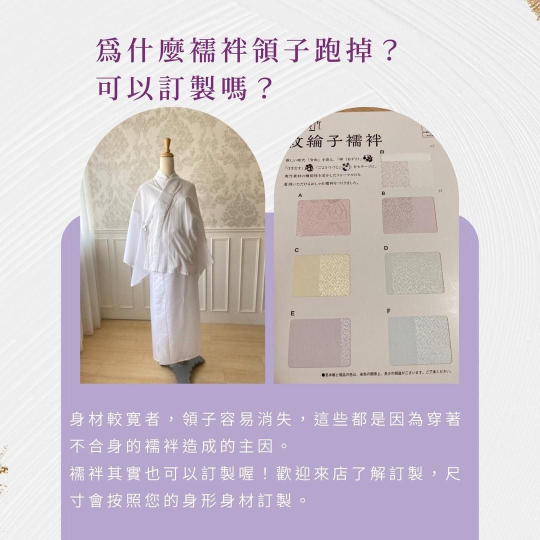 一般常見的成衣襦袢主要為素色淺色(白色居多)。