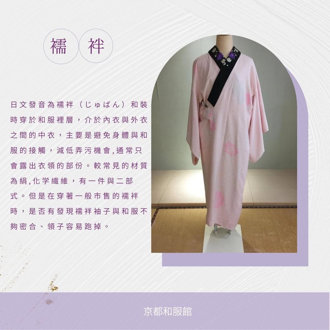 和裝時穿於和服裡層,介於內衣與外衣之間的中衣,主要是避免身體與和服的接觸,減低弄污機會,通常只會露出衣領的部份。較常見的材質為絹,化学繊維,有一件與二部式。但是在穿著一般市售的襦袢時,是否有發現襦袢袖子與和服不夠密合、領子容易跑掉。