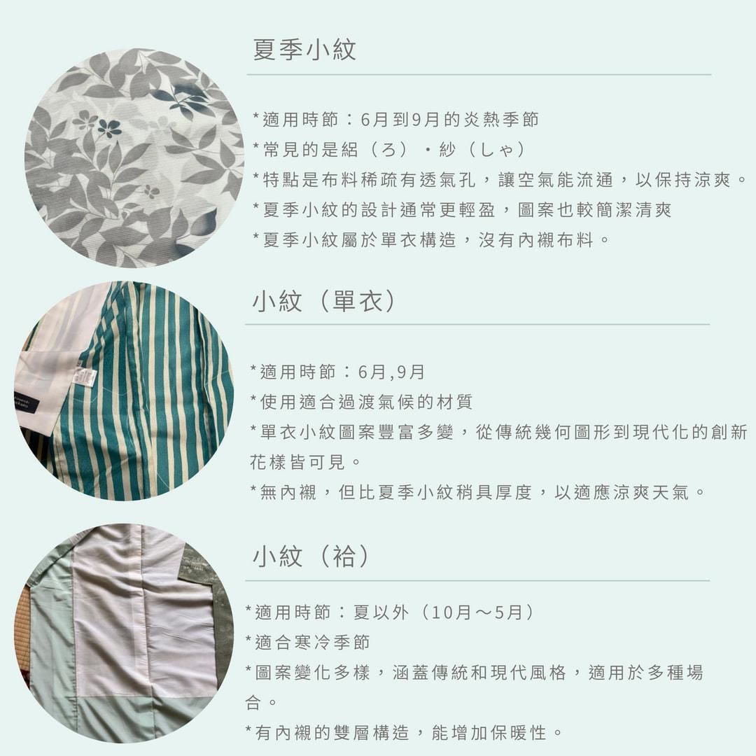 夏季小紋的設計通常更輕盈,圖案也較簡潔清爽