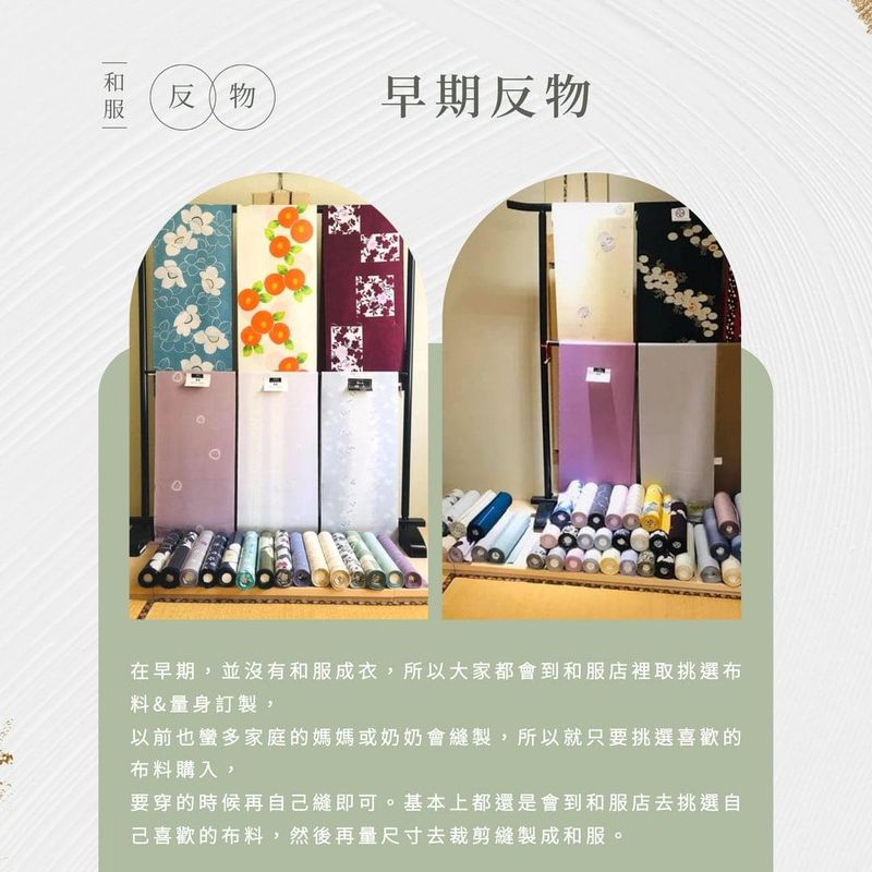 在早期,並沒有和服成衣,所以大家都會到和服店裡取挑選布料&量身訂製,以前也蠻多家庭的媽媽或奶奶會縫製,所以就只要挑選喜歡的布料購入,要穿的時候再自己縫即可。